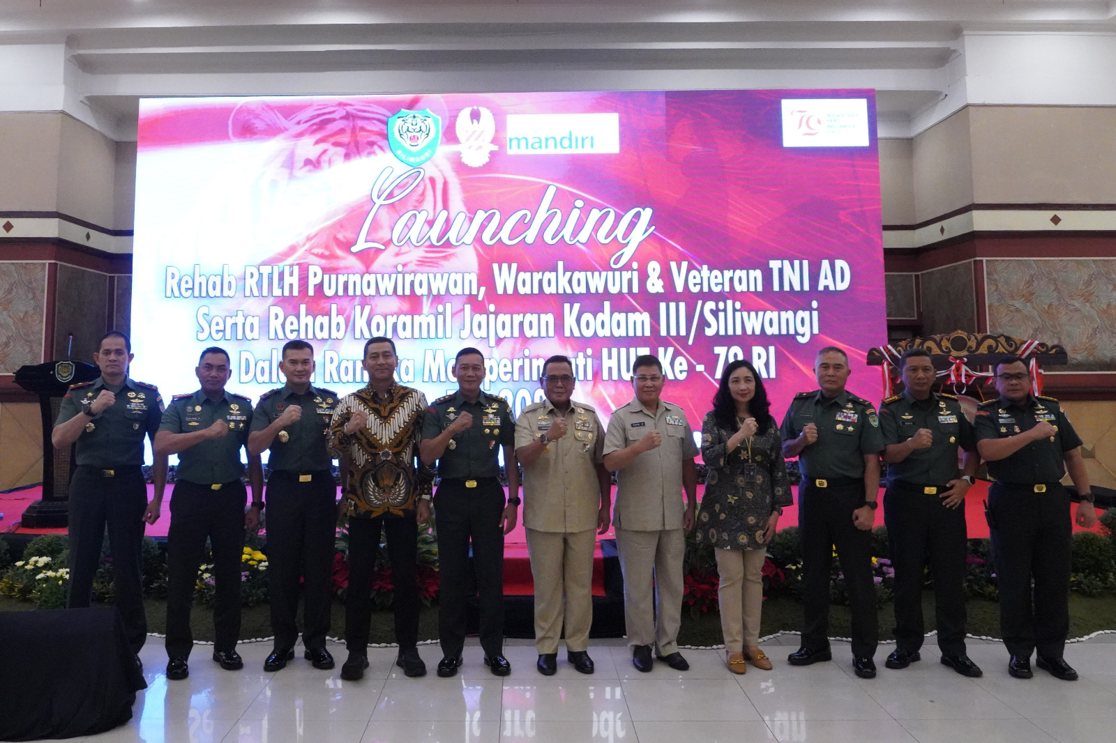 “Hari ini kita laksanakan program yang menyentuh keluarga besar TNI AD dengan launching rehab RTLH untuk membantu 55 orang Purnawirawan, Warakawuri dan Veteran di Jawa Barat dan Banten dalam rangka memperingati HUT ke-79 RI,” ucap Pangdam saat memberi sambutan acara yang bertempat di Graha Manggala Siliwangi di Kota Bandung pada Kamis (08/08/2024)..