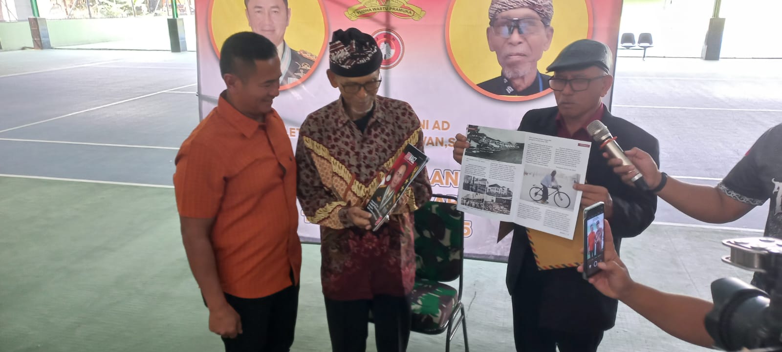 Selain itu, hadir pula mantan wartawan majalah, Gatra Sulhan Syafi’I, yang kini bergiat pada lembaga TATALI News Corporation. Ia berkenan memberikan buku masih tentang kehidupan Abah Landoeng berjudul ‘Landoeng Ngagoes Sampai Mekkah’ (kumpulan Cerita Abah Landoeng). “Buku ini terbitan 2024, saya persembahkan un dtuk Kang Iwan Setiawan Sang Letnan Jenderal Komandan Pussenif serta bagi ribuan pasukannya. Dari buku ini semoga kita bisa belajar tentang kehidupan bermasyarakat, berbangsa dan bernegara sekaligus,” ujarnya kepada redaksi sesaat setelah memberikan secara fisik buku setebal 77 halaman yang sarat tentang aneka dokumentasi khas milik Abah Landoeng.