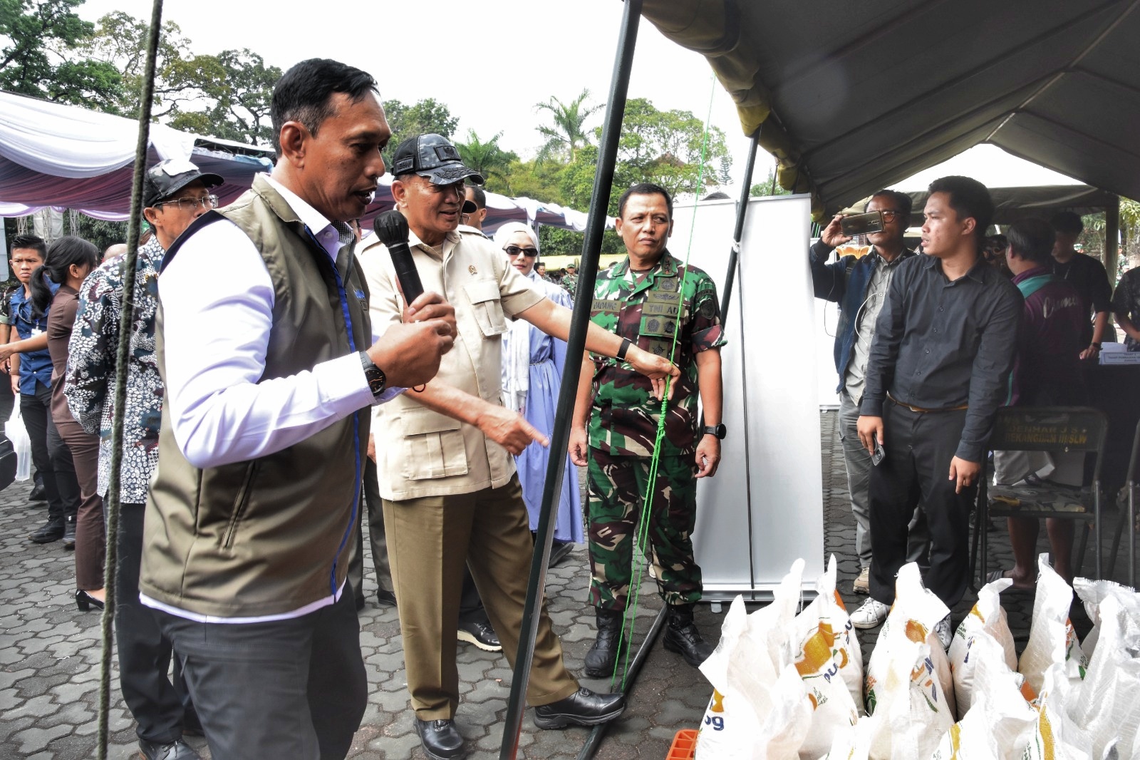Kegiatan ini bertujuan mewujudkan swasembada pangan nasional melalui Gerakan Pangan Murah Beras Stabilisasi Pasokan dan Harga Pangan (SPHP) serta penyaluran bahan pangan kepada masyarakat. Acara berlangsung di Lapangan Makodam III/Siliwangi, Kota Bandung, Kamis (24/7/2025).