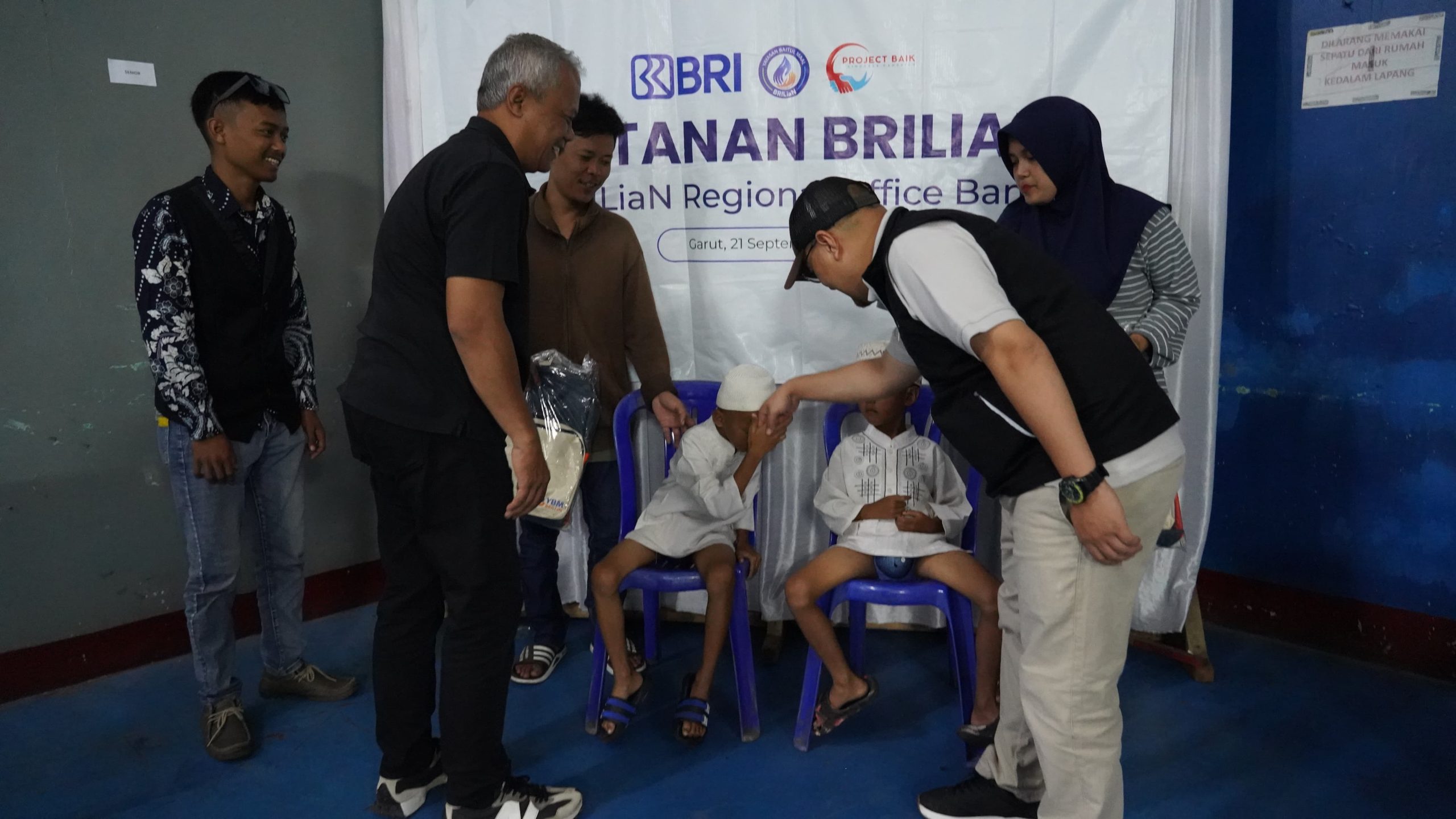 ALGIVON.ID – Bank Rakyat Indonesia (BRI) melaui Yayasan Baitul Maal (YBM) BRILian Regional Office 9 bekerja sama dengan Komunitas Project Baik dan Karang Taruna Desa Wanakerta selehrakanan Khitanan Masal di wilayah Kecamatan Cibatu, Kabupaten Garut. pada Minggu (21/9/2025) di Gedung Serbaguna Desa Wanakerta.