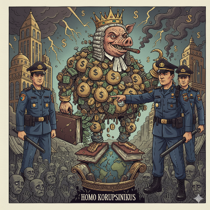Korupsinikus — jelmaan kutukan koruptor kawakan dari ribuan tahun lalu — kini telah melampaui lorong waktu yang panjang, rumit, dan bias. Anehnya, setelah segala kebusukan masa lalu, ia justru diangkat menjadi ponggawa moral “atas-bawah dan kiri-kanan” di negeri sungsang tumbal bernama Konoha Raya.